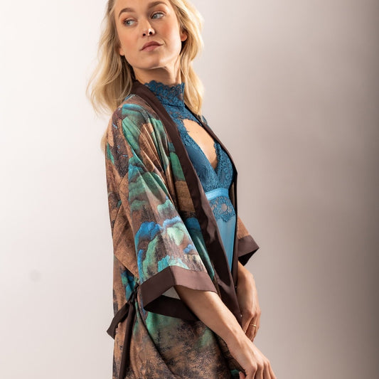 Combineer je kimono met een zachte pyjama of draag hem als statement piece over je outfit voor een luxe, vrouwelijke look.