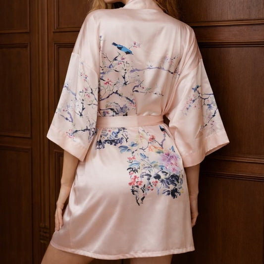 Kimono Dames Satijn - Birds & Blossom